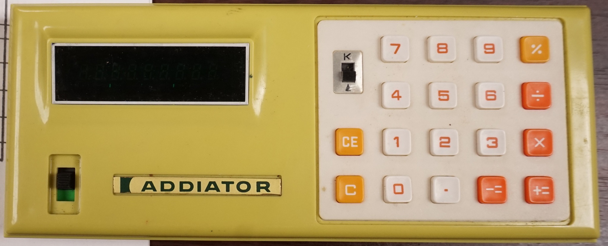 B598 Addiator EL83 Verkaufsstart 1975 Anfang der 70er Jahre lief das Geschäft mit Zahlenschiebern immer schlechter. Versuchsweise kaufte man Taschenrechner von anderen Herstellern.